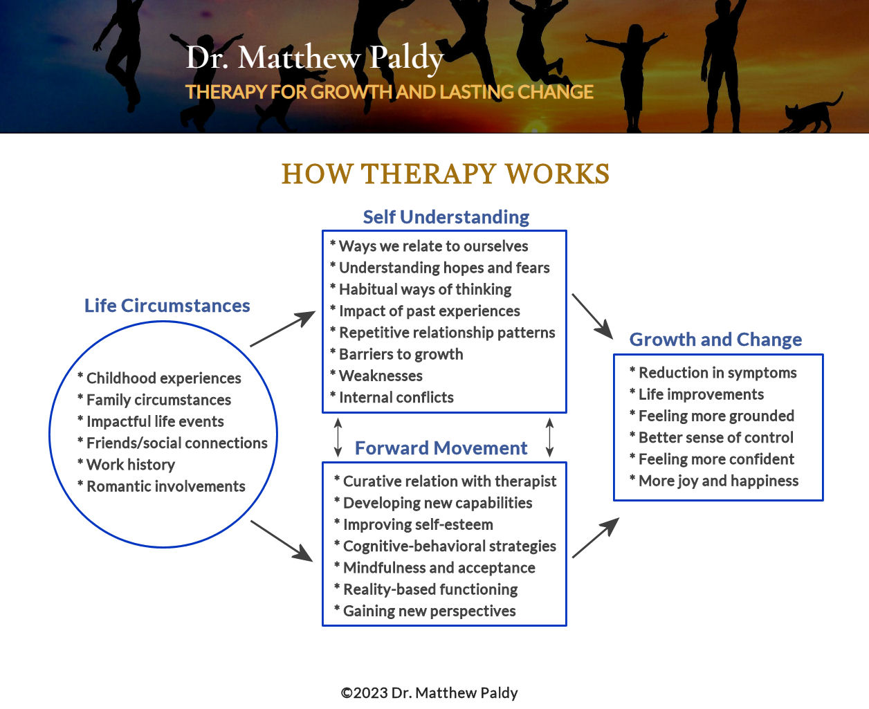 You’ll also find practical guides for people seeking therapy, as well as subpages dedicated to specific symptoms and issues.